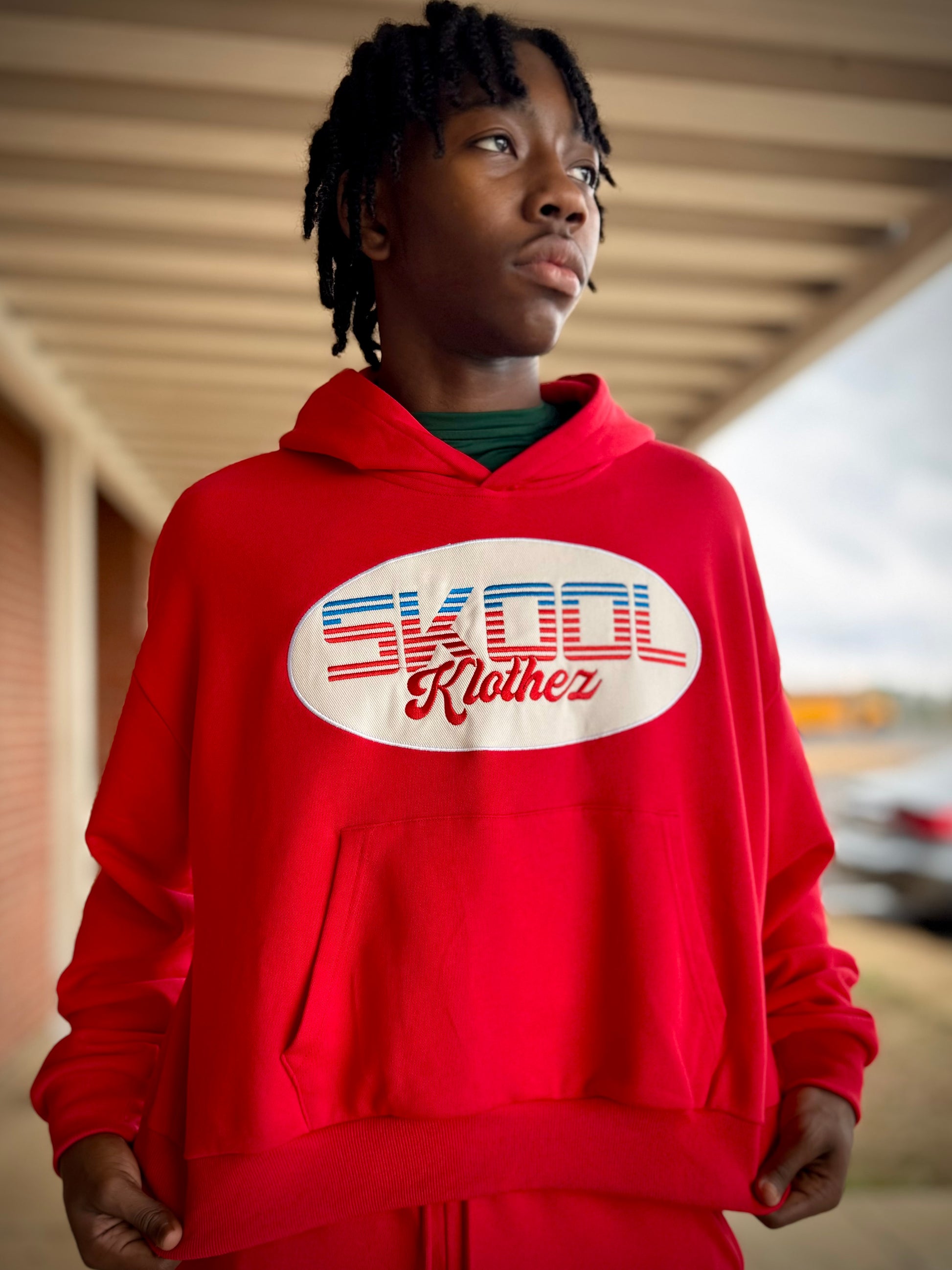 Red Skool Klothez Hoodie – Oversized Streetwear Pullover with Logo Design