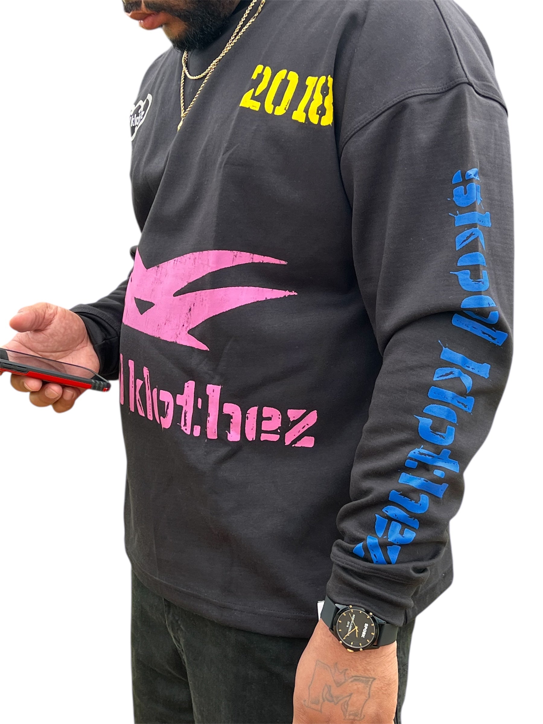 The Skool Klothez Graphic LS Tee brings retro energy with a modern edge. Featuring bold front graphics, varsity-style sleeve stripes, and a standout “2018” back hit, this long sleeve is built for effortless style. It’s the kind of piece that makes a statement without saying a word.